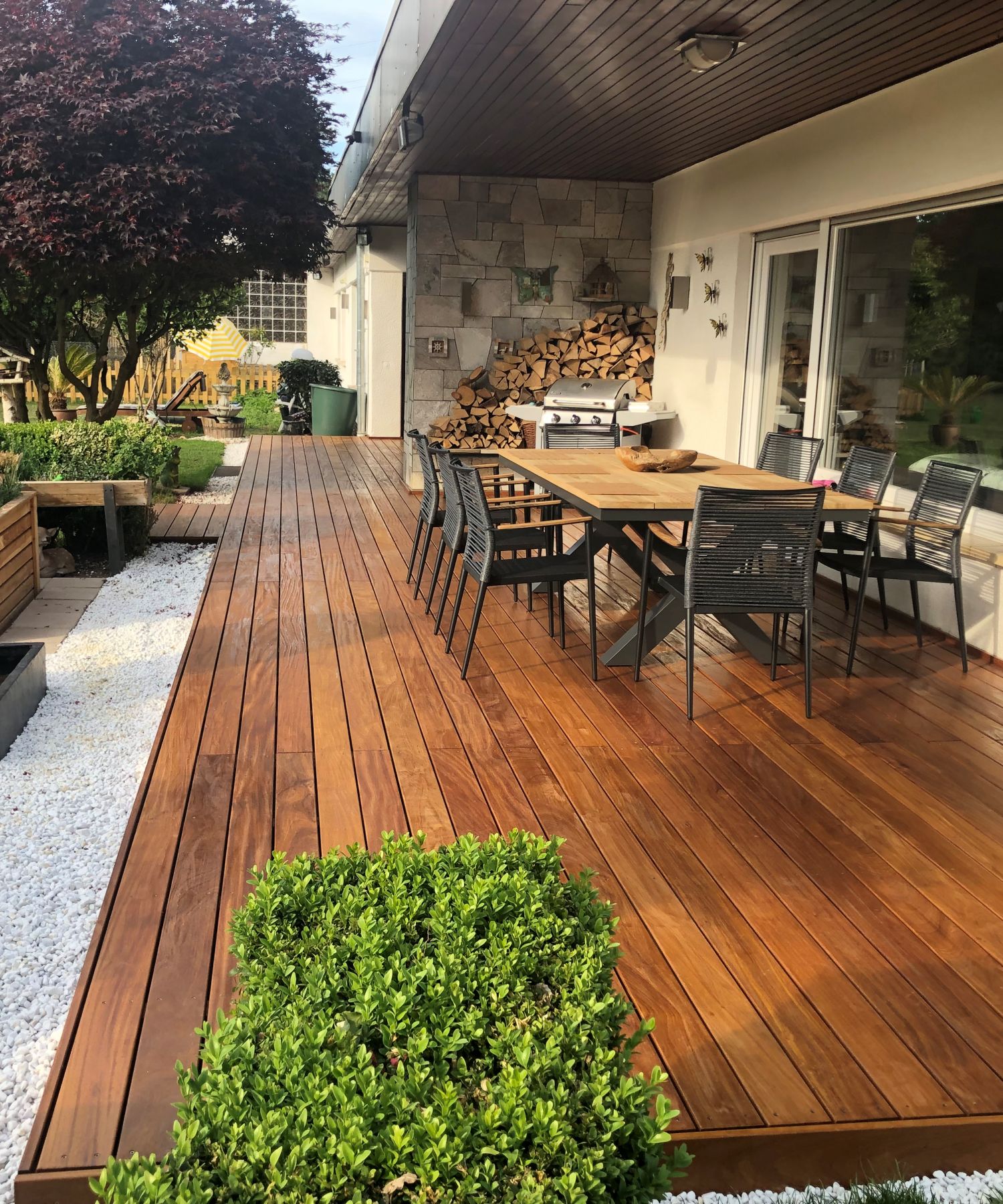 O deck de madeira de Cumaru é amplamente apreciado em áreas externas, especialmente ao redor de piscinas, oferecendo beleza e conforto em qualquer ambiente onde é aplicado. A beleza natural do Cumaru enriquece o espaço, proporcionando um visual que valoriza e revitaliza o local. Com tons que variam do castanho-claro ao castanho-escuro, e frequentemente apresentando veios distintos, o deck de Cumaru cria uma atmosfera acolhedora e sofisticada. Além de sua estética encantadora, o deck de Cumaru oferece conforto térmico aos usuários, sendo agradável ao toque mesmo em dias quentes. Sua durabilidade é notável, resistindo às condições externas e mantendo sua integridade estrutural ao longo do tempo com o devido cuidado e manutenção. Ideal para áreas de lazer e convívio ao ar livre, como em torno de piscinas, o deck de Cumaru é uma escolha popular entre arquitetos e proprietários que buscam qualidade, beleza natural e funcionalidade em projetos de áreas externas.