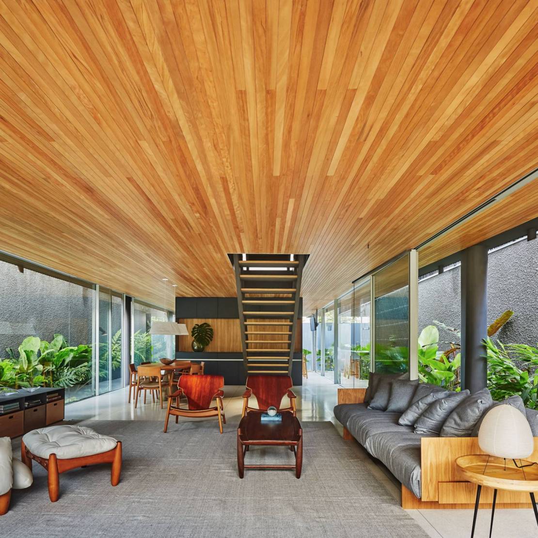 Os forros de madeira Tauari são uma escolha sofisticada e durável para acabamentos interiores de alta qualidade. Originária da América do Sul, a Tauari apresenta uma beleza natural com variações de tonalidade que vão do castanho-claro ao castanho-escuro, acompanhadas por um grão fino e textura que adicionam elegância aos espaços. Além de sua estética atraente, a Tauari é conhecida por sua resistência e durabilidade. É capaz de suportar bem o desgaste do uso diário, tornando-se ideal para áreas internas como residências, escritórios e espaços comerciais. Sua estabilidade dimensional também é notável, mantendo suas dimensões mesmo diante de variações climáticas. Essas características fazem dos forros de madeira Tauari uma escolha confiável e esteticamente refinada para quem busca qualidade e durabilidade em projetos de design de interiores.